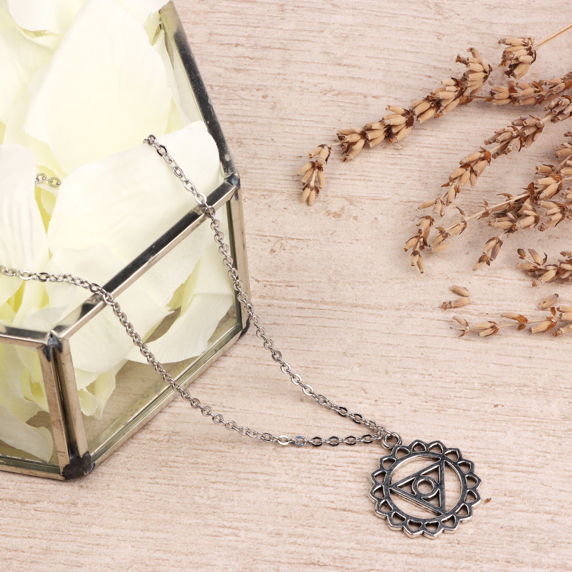 Featuring chakra symbol as a pendant, this beautiful necklace has a lobster claw closure for easy wear and is a perfect way to show off your spiritual side.