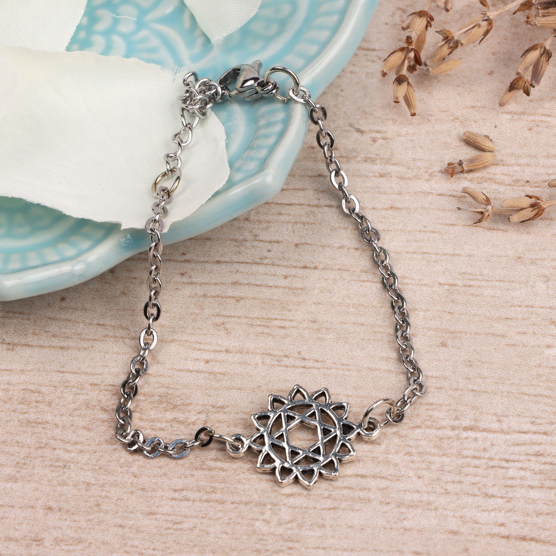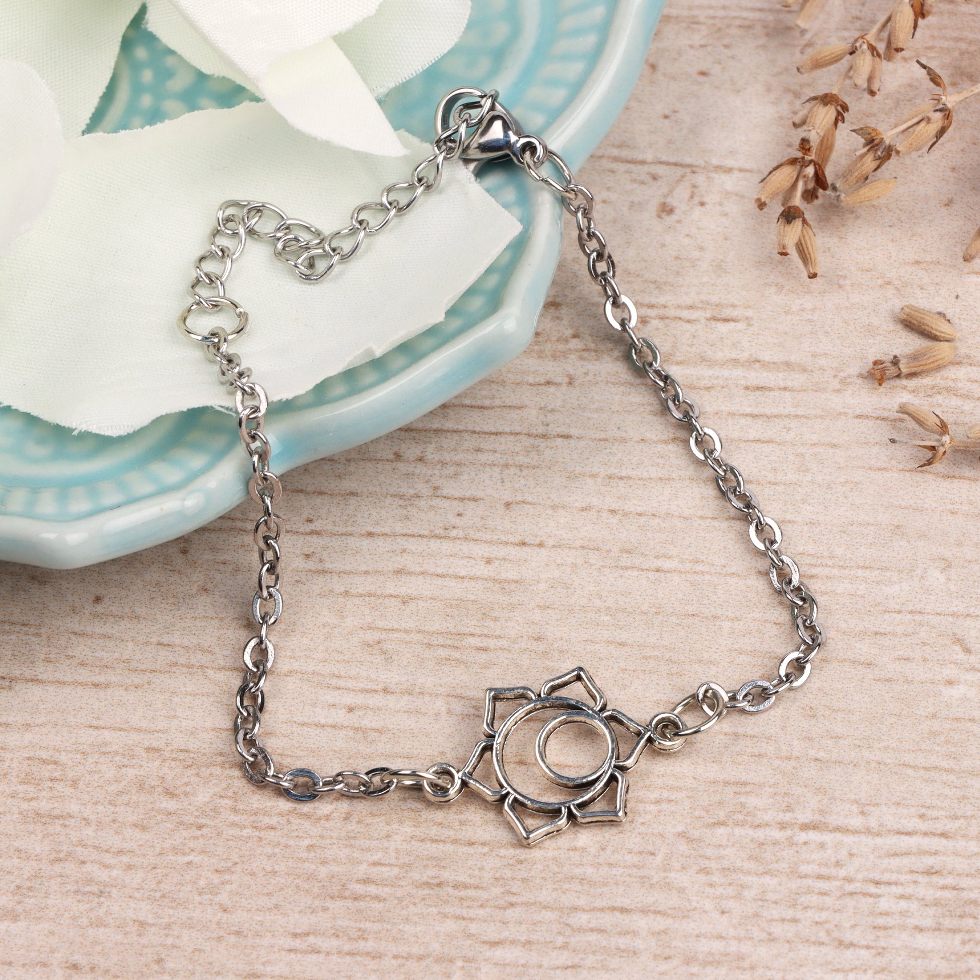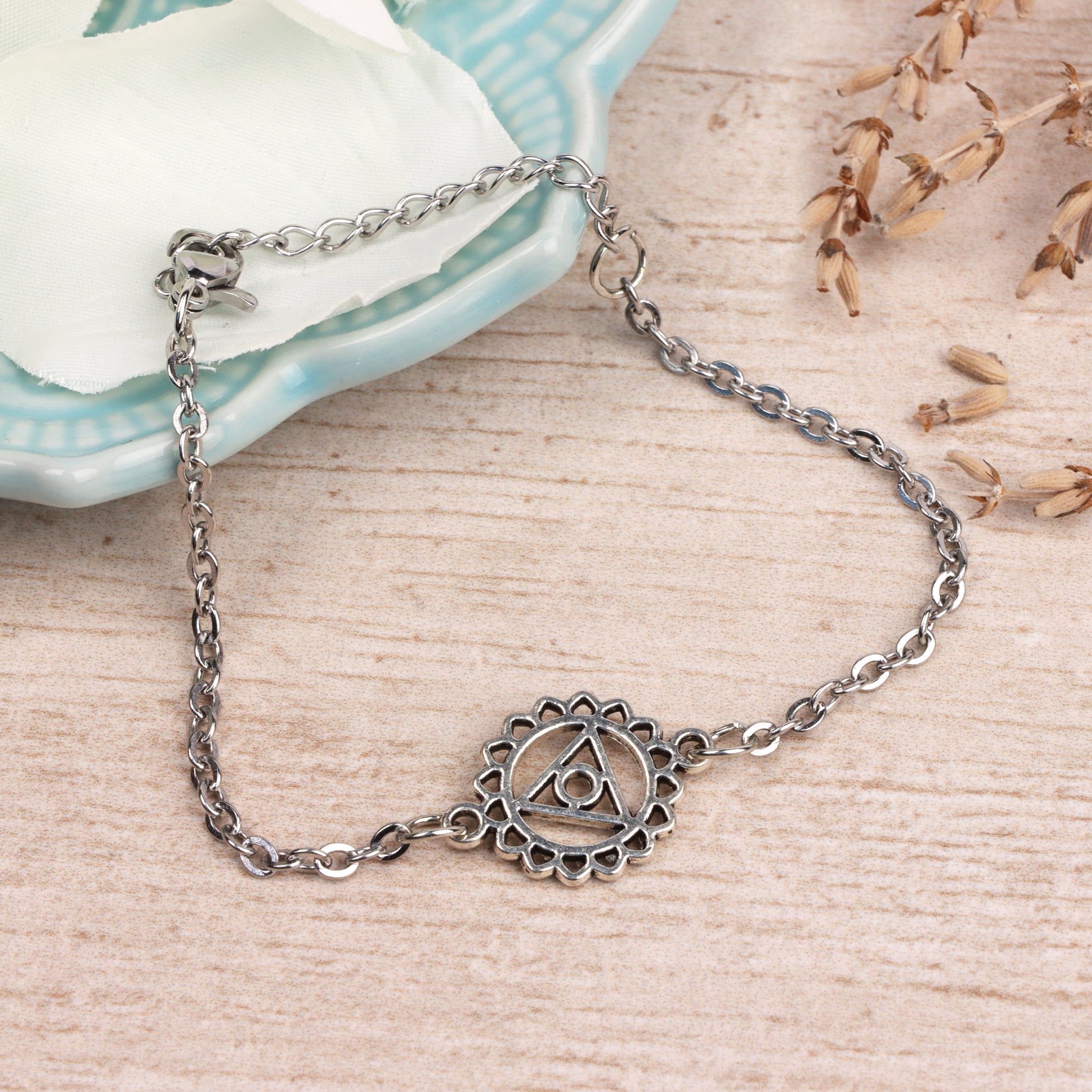 Make a statement with this bracelet, an eye-catching piece of jewellery to represent your inner strength. Featuring a chakra symbol as a pendant, this beautiful bracelet has a lobster claw closure for easy wear and is a perfect way to show off your spiritual side.