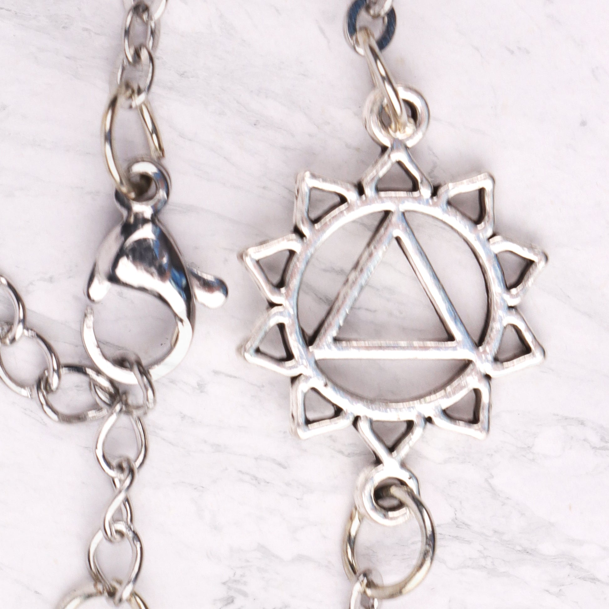 To maintain the look and quality of your jewellery, we recommend not to shower or swim with it. Wipe gently with a damp cloth that is soft and clean. Avoid contact with soaps, detergents, perfume or hair spray. Make a statement with this bracelet, an eye-catching piece of jewellery to represent your inner strength. Featuring a chakra symbol as a pendant, this beautiful bracelet has a lobster claw closure for easy wear and is a perfect way to show off your spiritual side.